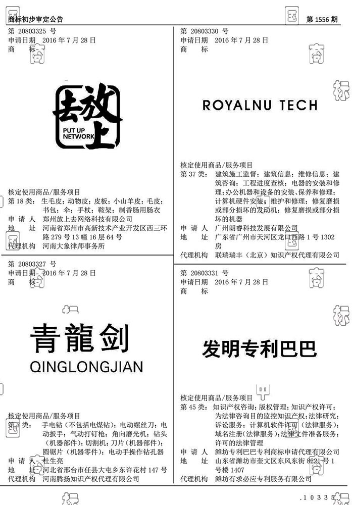 2018年-2022年,潍坊专利巴巴专利商标申请代理有限公司陆续提交了与发明专利巴巴相关的专利巴巴、发明巴巴、论文巴巴等多份商标注册申请。
